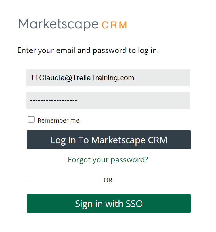Whether your company is new to Marketscape CRM, or you are a new employee, it is most likely that you will receive training for Marketscape CRM. We suggest that you log in to confirm that your account works in advance of your training.