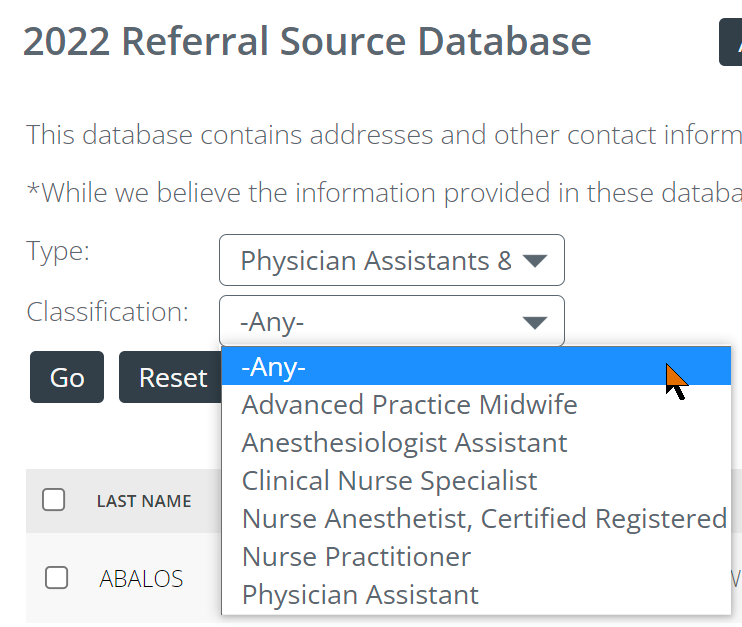 Marketscape CRM's Referral Source Database includes all individuals and organizations that have a registered NPI. To use this resource to identify NPs, PAs, and CNSs, follow the instructions below.