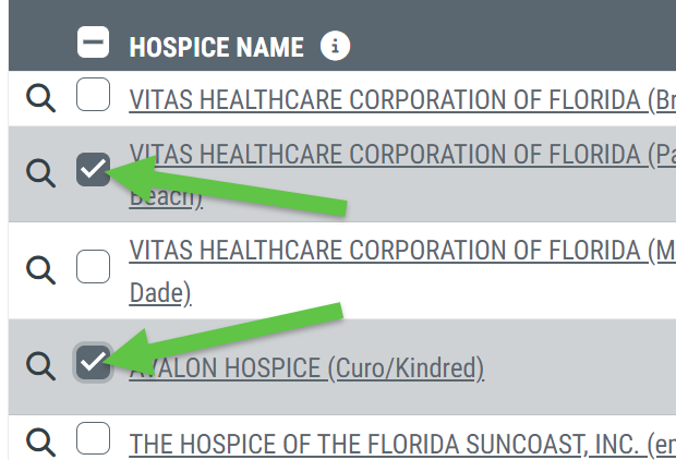 | HOS Assigned Users | The user(s) from your company assigned to the listed hospice. |